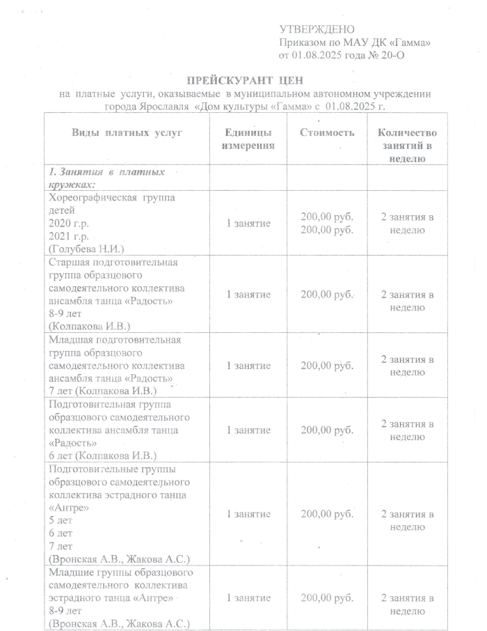 Прейскурант цен на 2025-2026 год